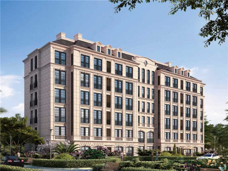 項目采用純法式建筑風格,總占地面積約200畝,總建筑面積約30萬平方米,由8棟法式洋房、16棟法式聯排別墅、15棟法式高層和36000平方米商業、幼兒園(2000平方米)組成。